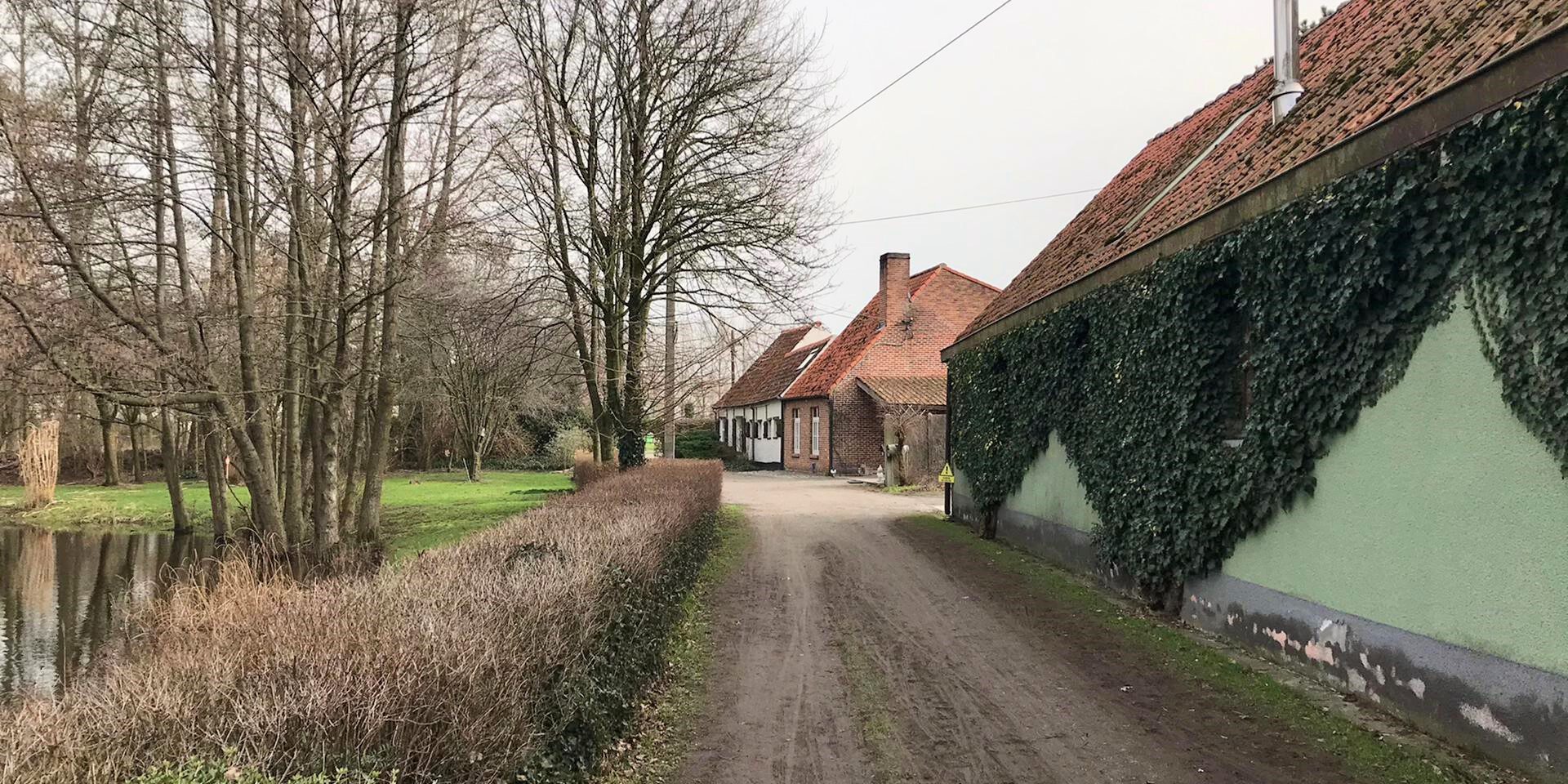 Aan de overkant van de Moervaart verraden de rietveldjes en de watervogels dat hier een stuk van de Moervaartmeersen ligt. Deze smalle strook moerasland met zijn wuivende rietpluimen is vrij uniek in deze streek. Het oude pomphuis op de Moervaart is eigendom van een hele rij zwaluwnestjes. En kijk, de uitnodigende bank staat precies op de goeie plek. Daarna gaat het in een bijna rechte lijn terug naar het startpunt van de wandeling, langs het mooie, open landschap van dit kleine paradijsje.
